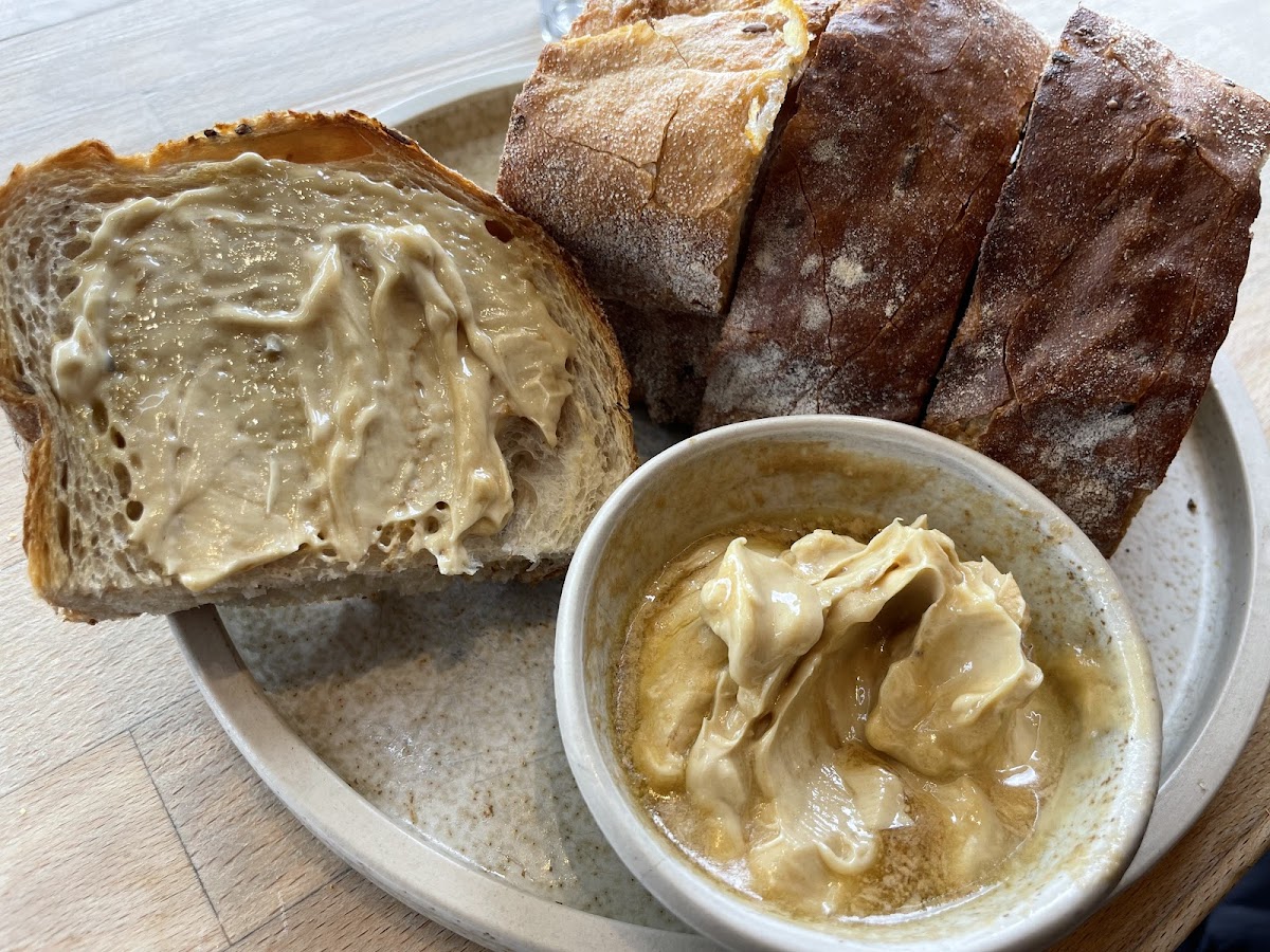 Sourdough with miso butter, banana cake with double cream, latte… everything here is just wonderful, absolutely brilliant