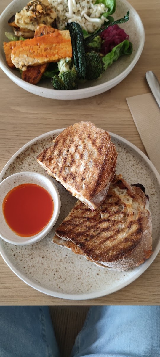 First off the food was impeccable, some of the best scrambled eggs, cooked to my liking, ive ever had and her ladyships breakfast sandwich was spot on. Our coffees were well made, the only slight issue was the only alternative milk they had was oat, but im ok with that although coconut is always my preference. Cost was fine, just under £30 for a decent breakfast item each and a coffee each. For me it was the little things that lost it a star, no sugar on the table or offered when the coffee was delivered, no salt and pepper either, only two serviettes in the little box that the cutlery was sitting in and the final issue, is the open kitchen which resulted in us both walking out smelling of cooked food, sure there are worse things to smell of, but the extraction in the cafe could def do with a boost. We'll def be back but maybe we will sit outside on future visits.
